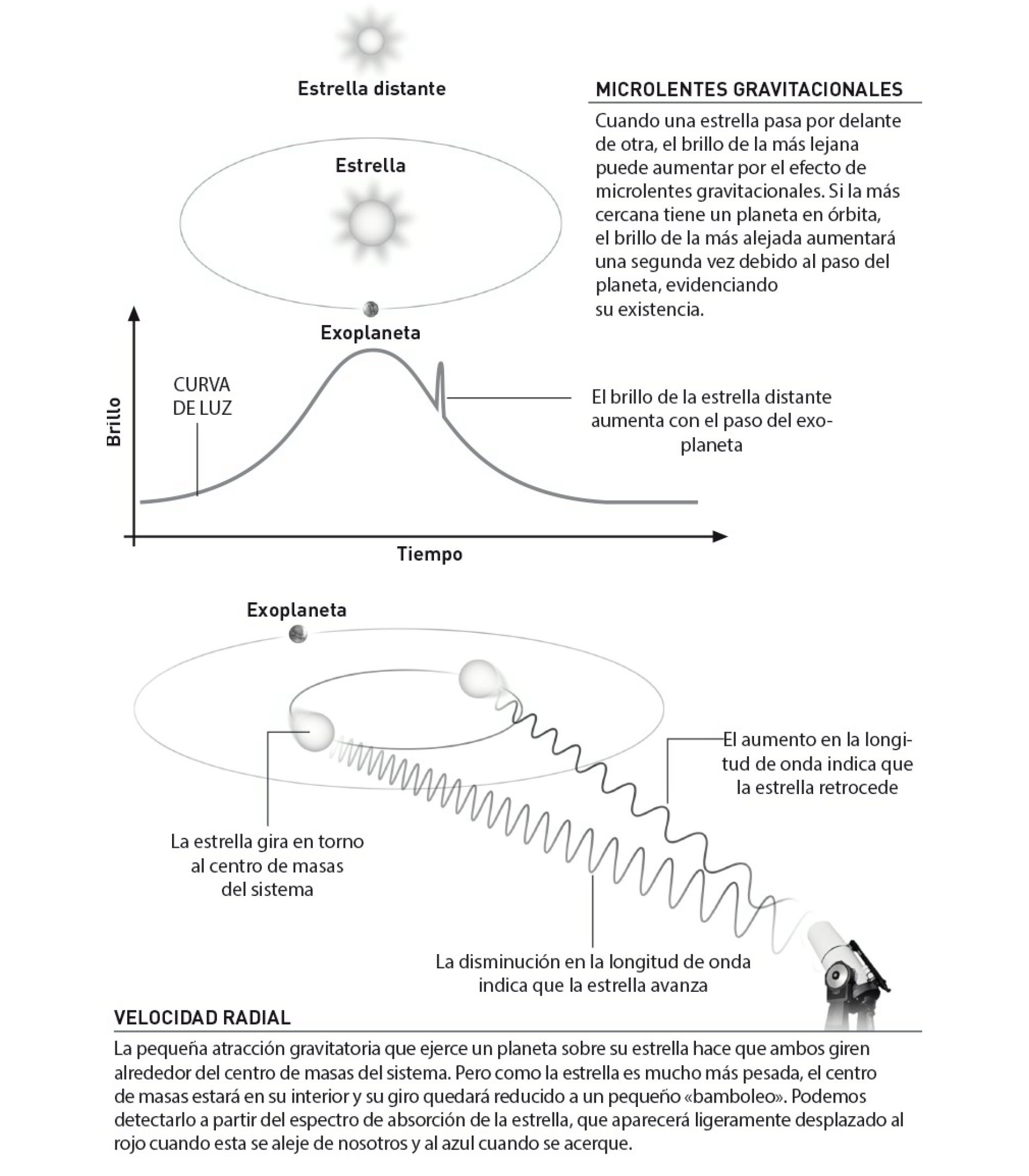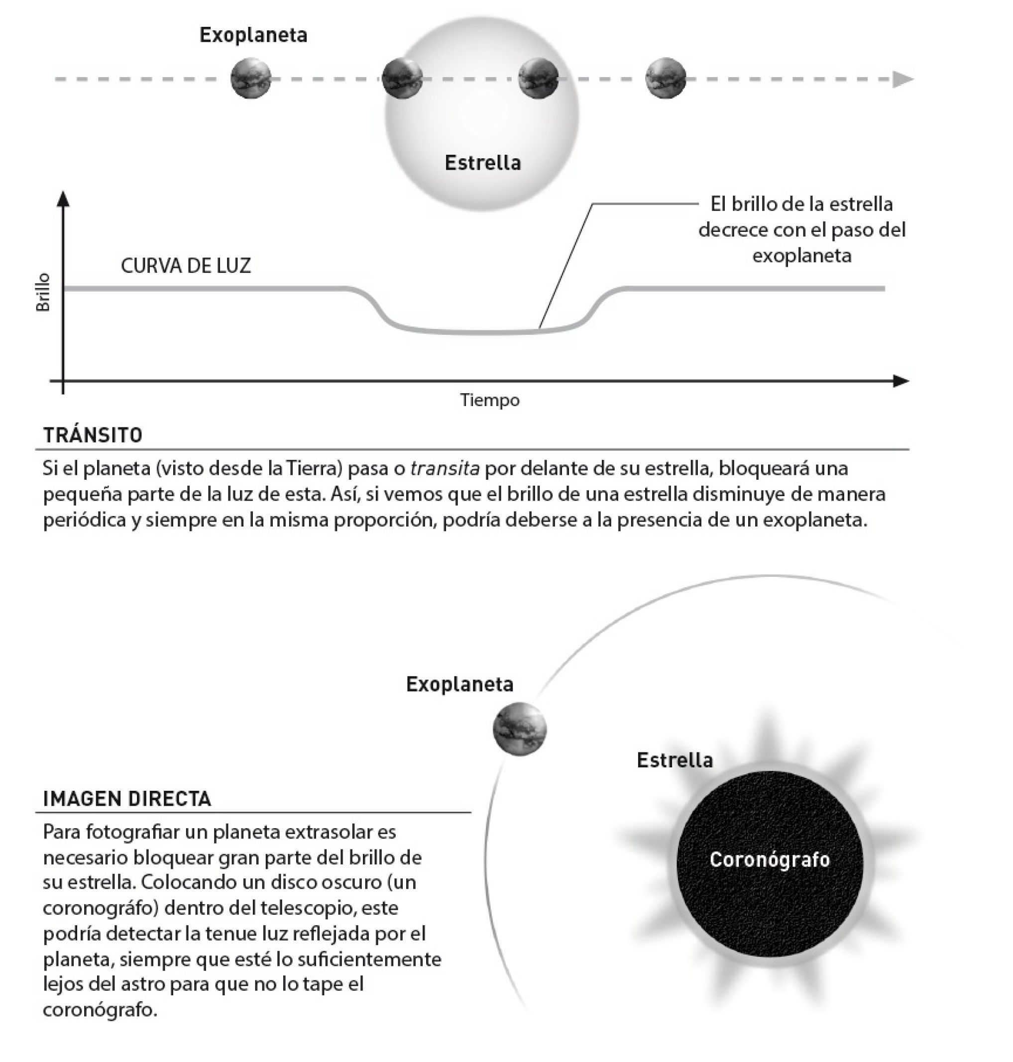 Pero encontrar planetas alrededor de otras estrellas es extremadamente difícil. Los planetas son pequeños comparados con la mayoría de los cuerpos celestes. Y pueden llegar a ser mil millones de veces más tenues que las estrellas alrededor de las que orbitan. Además, se encuentran a años-luz de distancia (el más cercano que conocemos gira alrededor de Próxima Centauri, a 4,25 años-luz del Sol). Eso hace que sea casi imposible verlos directamente, incluso usando telescopios tan potentes como el Hubble. Por ello, los astrónomos han tenido que idear métodos alternativos para encontrar estos objetos. Entre ellos destacan dos: el método del tránsito, en el que se trata de observar una disminución del brillo de la estrella cuando su planeta pasa por delante de ella (esta es la técnica usada por el satélite Kepler); y el de la velocidad radial, donde lo que se intenta detectar es el pequeño «bamboleo» que sufre la estrella debido a la atracción gravitatoria del planeta. Aproximadamente el 95 % de los descubrimientos realizados hasta la fecha se han basado en uno de estos dos métodos.