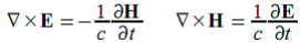 Donde el triángulo del revés y el punto son la notación para la divergencia. Dos ecuaciones más nos dicen que cuando una región de un campo eléctrico gira en un círculo pequeño, crea un campo magnético perpendicular al plano de ese círculo, y de manera similar una región de un campo magnético girando crea un campo eléctrico perpendicular al plano de ese círculo. Hay un giro curioso: los campos eléctrico y magnético apuntan en direcciones opuestas para una dirección dada del giro. Las ecuaciones son: