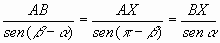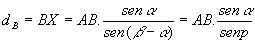 Y puesto que conocemos la longitud AB del segmento base, ya que es accesible para nosotros, tenemos: