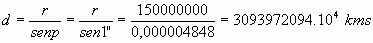 Si r, el radio medio de la orbita de la Tierra alrededor del Sol, viene expresado en años luz, entonces, directamente, la distancia estelar se obtiene en años luz tambien.