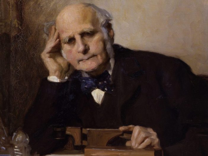 Irónicamente, la idea se remonta al propio Galton. Su libro "Hereditary Genius" (Genio hereditario) de 1869 construido sobre escritos anteriores para desarrollar la idea de que «las habilidades naturales de un hombre son derivadas de la herencia, bajo exactamente las mismas limitaciones que la forma y las características físicas de todo el mundo orgánico. Consecuentemente ... sería bastante factible producir una raza altamente dotada de hombre por matrimonios juiciosos durante varias generaciones consecutivas». Afirmaba que la fertilidad era mayor entre los menos inteligentes, pero evitaba cualquier sugerencia de selección deliberada en favor de la inteligencia. En su lugar, expresaba la esperanza de que la sociedad podría cambiar de modo que la gente más inteligente comprendiese la necesidad de tener un montón de niños.
