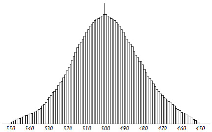 Después de eso, se trata de remplazar cada C y (+) por su probabilidad, p o q, respectivamente. Incluso en este caso, cada extremo CCC y +++ se da solo una vez en ocho pruebas, y números más equitativos se dan en los otros seis. Un cálculo más sofisticado usando propiedades estándar de los coeficientes binomiales prueba la ley de Bernoulli de los grandes números. Los avances en las matemáticas con frecuencia son provocados por la ignorancia. Cuando los matemáticos no sabían cómo calcular algo importante, encontraban un modo de acercarse sigilosamente a ello indirectamente. En este caso, el problema es calcular estos coeficientes binomiales. Hay una fórmula explícita, pero si, por ejemplo, quieres saber la probabilidad de obtener exactamente 42 caras cuando lanzas una moneda 100 veces, tienes que hacer 200 multiplicaciones y luego simplificar una fracción muy complicada. (Hay atajos, pero son también liosos.) Mi ordenador me dice en una fracción de segundo que la respuesta es: 28.258.808.871.162.574.166.368.460.400p42q58.