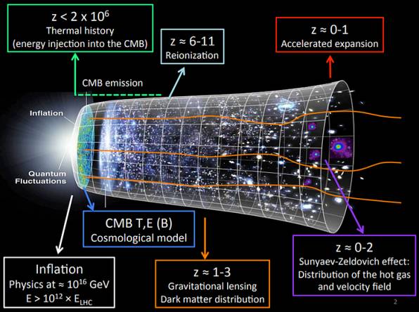 Mirar con un telescopio objetos cada vez más lejanos es como viajar al pasado, ya que la luz que observamos fue emitida por objetos cada vez más distantes en el tiempo. Sin embargo, existe un límite que no podemos traspasar: una "barrera" situada aproximadamente 380.000 años después del Big-Bang. Antes de este periodo el Universo estaba tan caliente que los electrones y los núcleos atómicos estaban separados y el Universo era opaco a las radiaciones electromagnéticas que eran absorbidas por las partículas cargadas. En el momento de la recombinación, los núcleos y los electrones se unieron en átomos neutros y la luz pudo escapar: este es el origen del llamado fondo cósmico de microondas (CMB). Las ondas gravitatorias permiten penetrar esta barrera ya que no están afectadas por la recombinación. Observando ondas gravitatorias procedentes de los primeros instantes del Universo podríamos obtener nueva información sobre el origen de nuestro Universo.