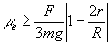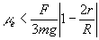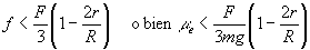 Para que la rueda se mantenga rodando sin deslizar se debe de cumplir que el valor absoluto de la fuerza de rozamiento estático Fr sea menor que el valor límite meN |Fr|£ meN con N=mg. Si el coeficiente de rozamiento estático µe es tal que