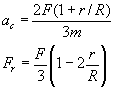 Consideremos que el cuerpo que rueda es un cilindro o un disco de masa m y de radio R, cuyo momento de inercia respecto de a su eje de simetría es Ic=mR2/2, Resolviendo las ecuaciones anteriores, obtenemos