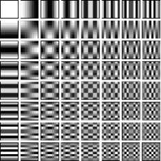 FIGURA . Los 64 patrones básicos a partir de los cuales cualquier bloque de 8 × 8 píxeles se puede obtener.