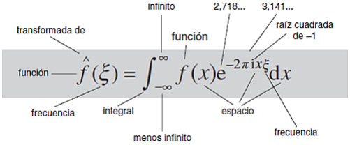 En su forma más general, el método de Fourier representa una señal, determinada por una función f, como una combinación de ondas de todas las frecuencias posibles. Esto se llama la transformada de Fourier de la onda. Remplaza la señal original por su espectro: una lista de las amplitudes y frecuencias para los senos y cosenos que la componen, codificando la misma información de un modo diferente; los ingenieros hablan de transformación del dominio del tiempo en dominio de la frecuencia. Cuando los datos se representan de modos diferentes, las operaciones que eran difíciles o imposibles en una representación pueden convertirse en fáciles en la otra. Por ejemplo, puedes empezar con una conversación telefónica, formar su transformada de Fourier y eliminar todas las partes de las señales cuyas componentes de Fourier tienen frecuencias demasiado altas o demasiado bajas como para que el oído humano las oiga. Esto hace posible enviar más conversación a través de los mismos canales de comunicación, y es una razón por la que las facturas de teléfono actuales son, hablando en términos relativos, tan bajas. No puedes jugar a este juego con la señal original sin transformar, porque no tiene la «frecuencia» como una característica obvia. No sabes qué eliminar.