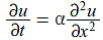 Aquí u(x, t) es la temperatura de una varilla de metal en la posición x y el tiempo t, considerando la varilla como infinitamente fina, y α es una constante, la difusividad térmica. De modo que realmente podría llamarse la ecuación de la temperatura. También desarrolló una versión para dimensiones mayores: