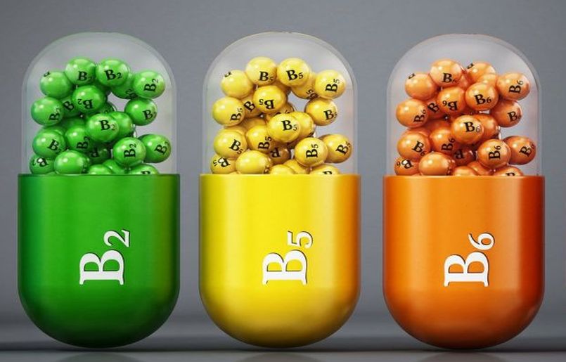 El denominado complejo vitamínico B incluye los siguientes compuestos: tiamina (B1), riboflavina (B2), ácido pantoténico (B3), ácido nicotínico (B5), piridoxina (B6), biotina (B7), ácido fólico y cobalamina (B12).
